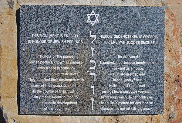 Just outside the Police College on the southern outskirts of Graaff-Reinet a roadside memorial pays tribute to the role of the Jewish ‘smous’ or peddler in supplying Karoo residents with some of the basic necessities of life from as early as the late eighteenth century. Their contribution to the growth of the Karoo economy was pivotal and in times past almost every Karoo town had an active Jewish community and synagogue, however their numbers have dwindled and the Jewish community has all but disappeared from the Karoo.